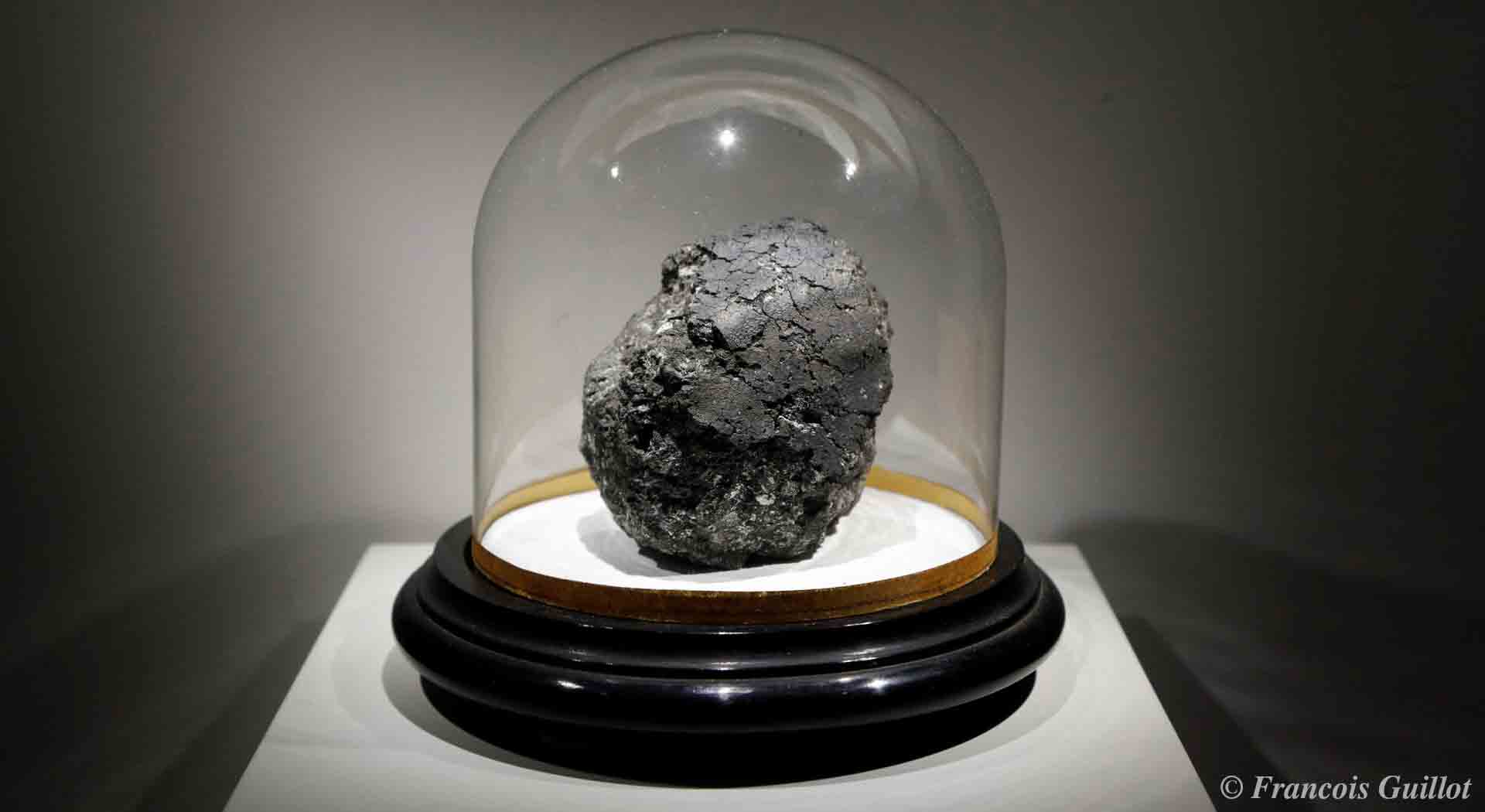 Orgueil Meteorite on display at the Muséum National d'Histoire Naturelle, Paris.